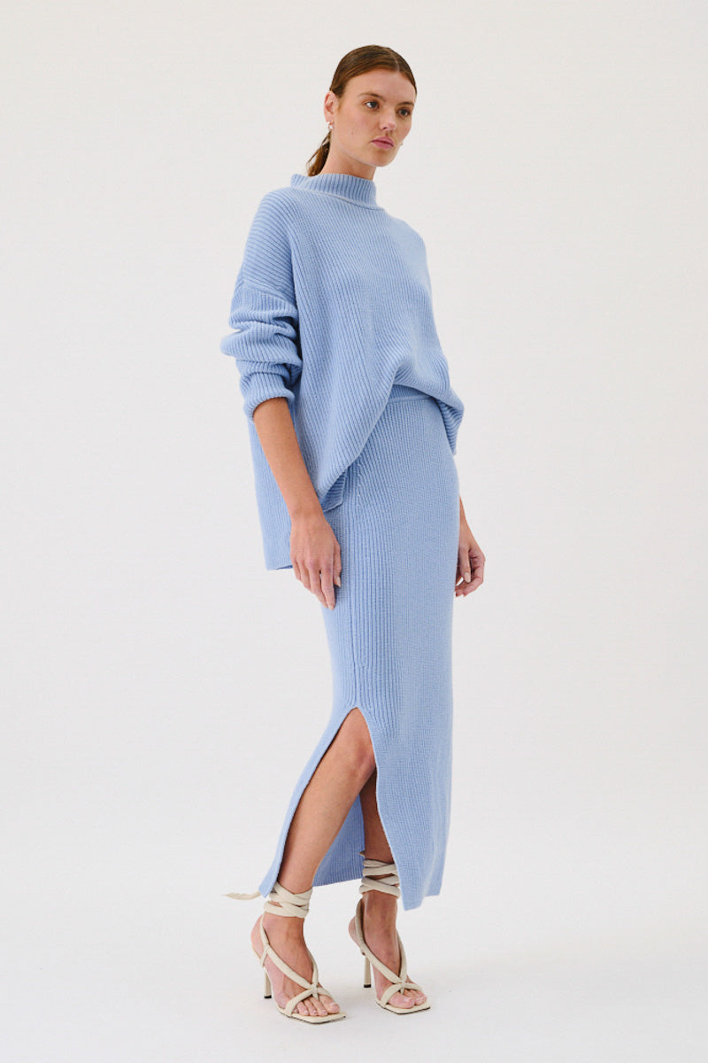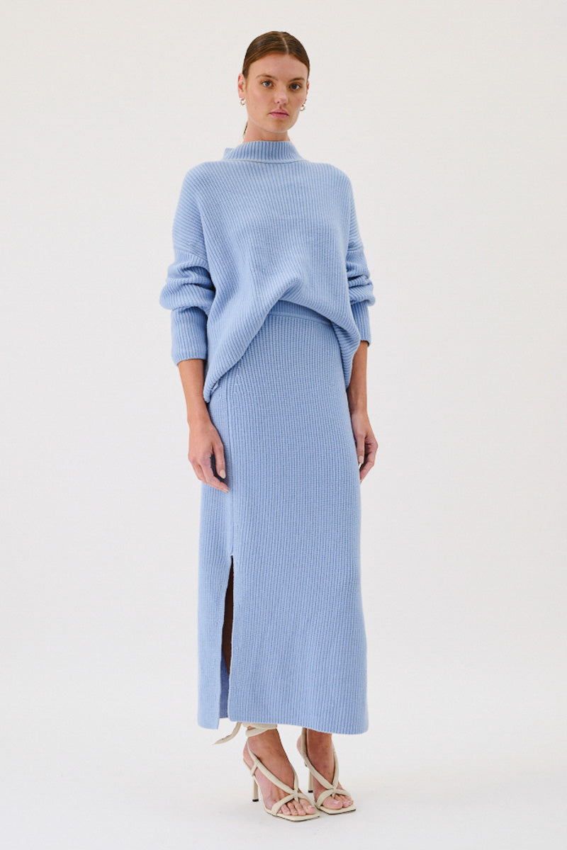 Crafted from a luxurious ribbed wool-blend knit, this skirt is a true wardrobe staple that combines style and comfort. Cozy without compromising on style it is perfect for cooler weather. Match with Isla knit skirt to complete the look.