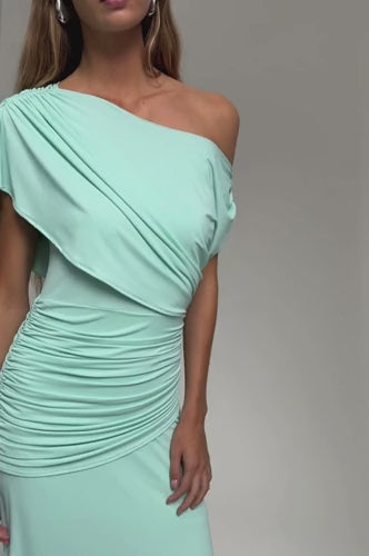 The Emily Draped Maxi Dress is designed to elongate and move, blending sheer detailing with fluid lines. The wide neckline drapes across the shoulders, while the asymmetric ruched bodice adds a flattering lightness to the design. The semi-sheer skirt is perfect for achieving a flowy feel, perfect for elevated events.