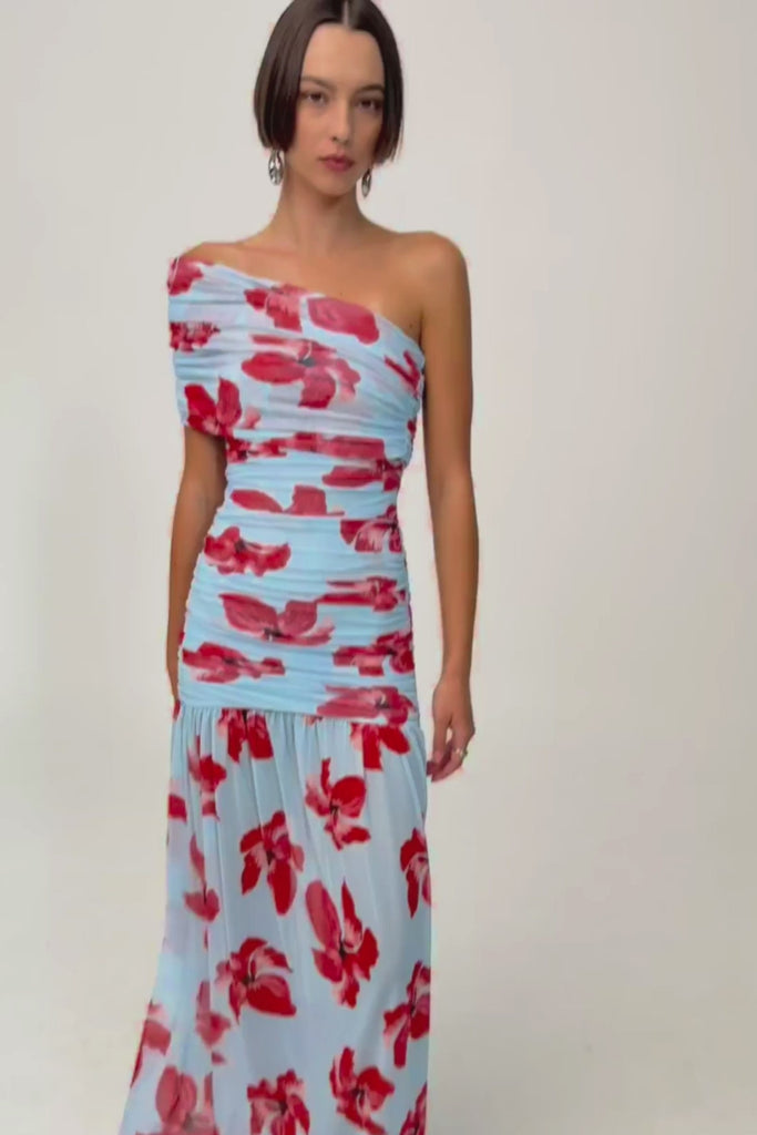 The Chloe 3-Way Maxi Dress combines elegance with versatility. Cut from sheer stretch mesh in a romantic floral print, this maxi gown drapes beautifully over the body to accentuate natural curves, while soft gathers cascade through the waist and hips to create fluid movement.